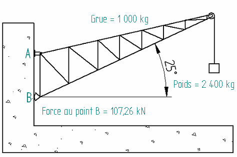 Dans cet exemple, des champs propriété dans les légendes indiquent les valeurs de poids et de résistance de référence pour la grue, la caisse et la résistance.