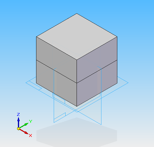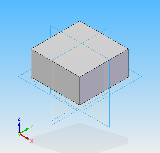 Parts or subassemblies are initially placed into the assembly at the same location and position they maintain in their original files. The following illustration shows a block and its position relative to the three initial global reference planes. The block is positioned so its corner is at the coordinate (0,0,0). When this part is placed into an assembly using the AddByFilename method, it is placed in the same location and orientation in the assembly file as it existed in the original part file. Subassemblies follow the same rules.