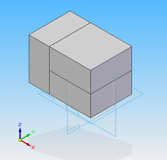 To show how to use these methods, consider a block with dimensions of 100 mm in the x axis, 100 mm in the y axis, and 50 mm in the z axis. Assume that you need to place three of these parts to result in the following assembly: